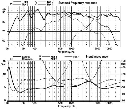 можно увидеть суммарную АЧХ на фоне АЧХ по полосам? Желательно АЧХ обоих НЧ динамиков представить одной полосой, плюс СЧ, плюс ВЧ.
