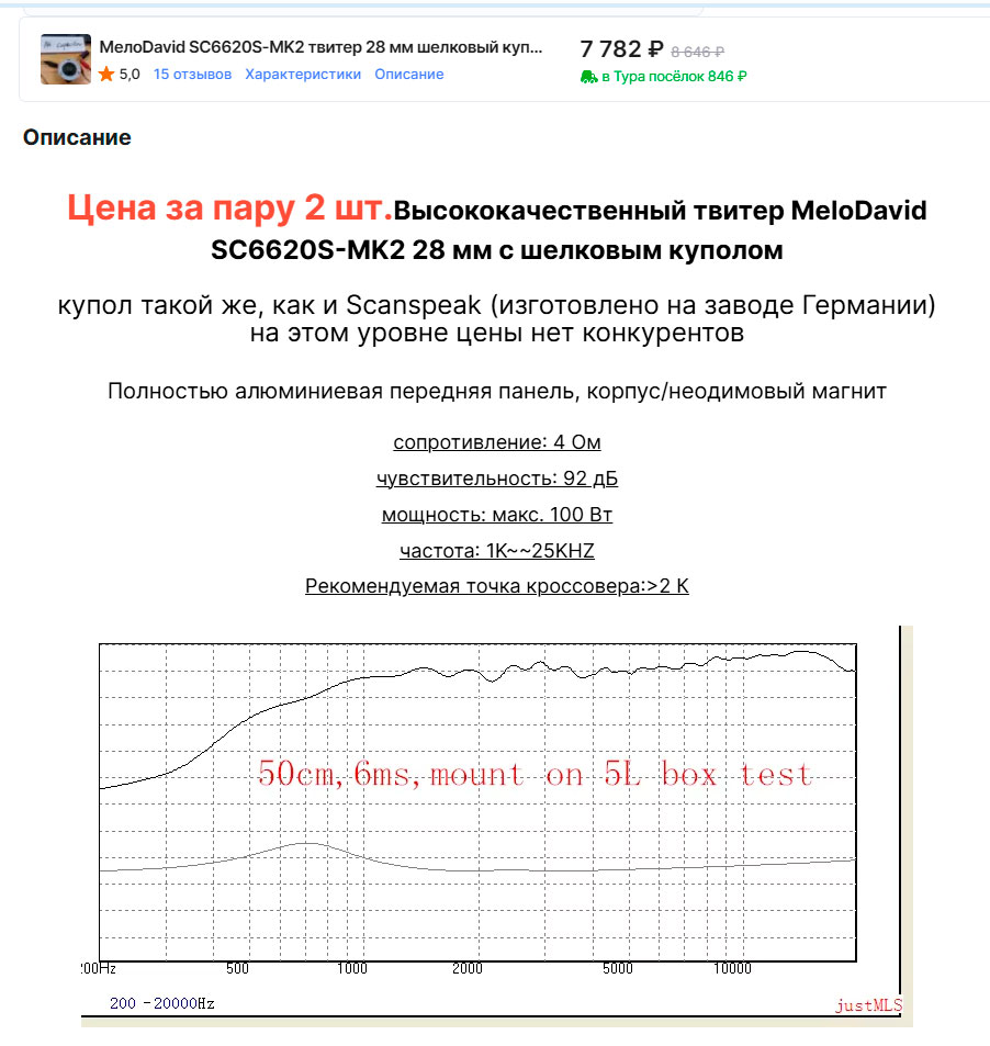 получается за 12к пара оригиналов от Вифа? оч интересно. По ссылке есть тоже измерения пары динамиков, сходство и повторяемость параметров, тоже говорят в сторону оригинала, только как за такие деньги.. Дешево как то.