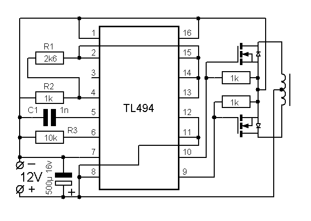 Тогда будем по существу, насчет TL494. Схему выдрал из повышающего ПН.