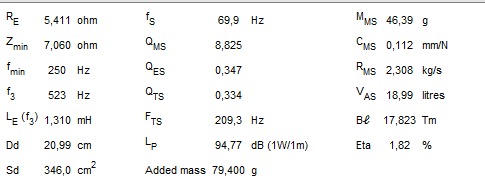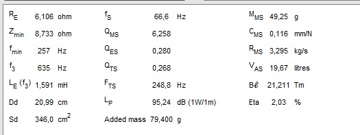 Динамики практически из коробки, при надавливании на цш небольшие похрустывания, один дин помял руками резонанс упал с 77 до 76.