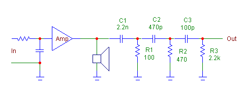 В дополнение поста 2303 о проверке возможного возникновения ВЧ сигналов (о причинах возникновения этих сигналов см. в том же посте) в петле ООС (см. простенькую схему на верхнем рисунке), на вход УМ (нагруженный на реальную колонку) через ФНЧ с частотой не более 10 кГц (это облегчает дальнейшую фильтрацию, а в данном случае хватает просто динамический сложный сигнал, особо большая скорость не важна) подаём реальный музыкальный сигнал, а выход фильтрируем простеньким ФВЧ (см. нижний рисунок, подавление 10 кГц не менее 110 дБ) и подаём на ВЧ вольтметр. Думаю, что такой простой способ должен обнаружить внутренние проблемы усилителя (напр., динам. генерацию в каком-то узле) при реальной работе.