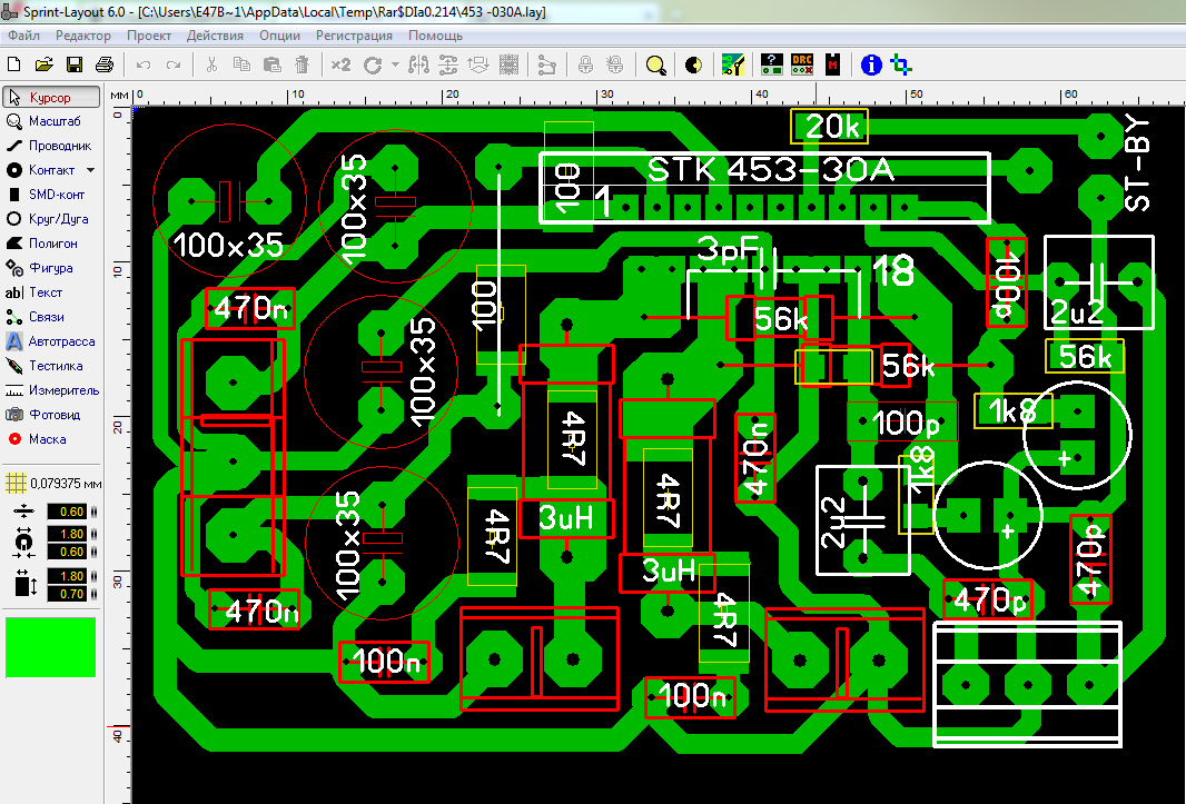 Макрос STK 453 -30A.rarВыкладываю в первой прикидке макрос на -030А. До долей миллиметра замерять не удаётся. Выводы .......ь сильно тонкие. Максимум 0,6мм. Попробую в рисунке при разводке максимально подогнать.100% точность не гарантирована.