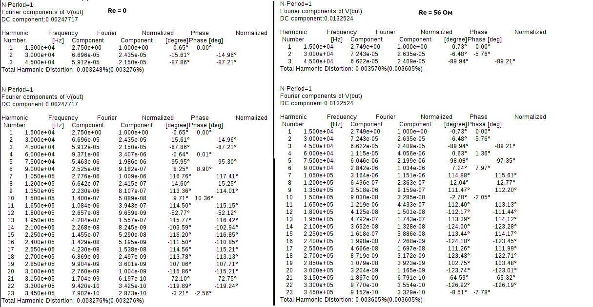 И результаты моделирования транзисторной части без резистора и с резистором.