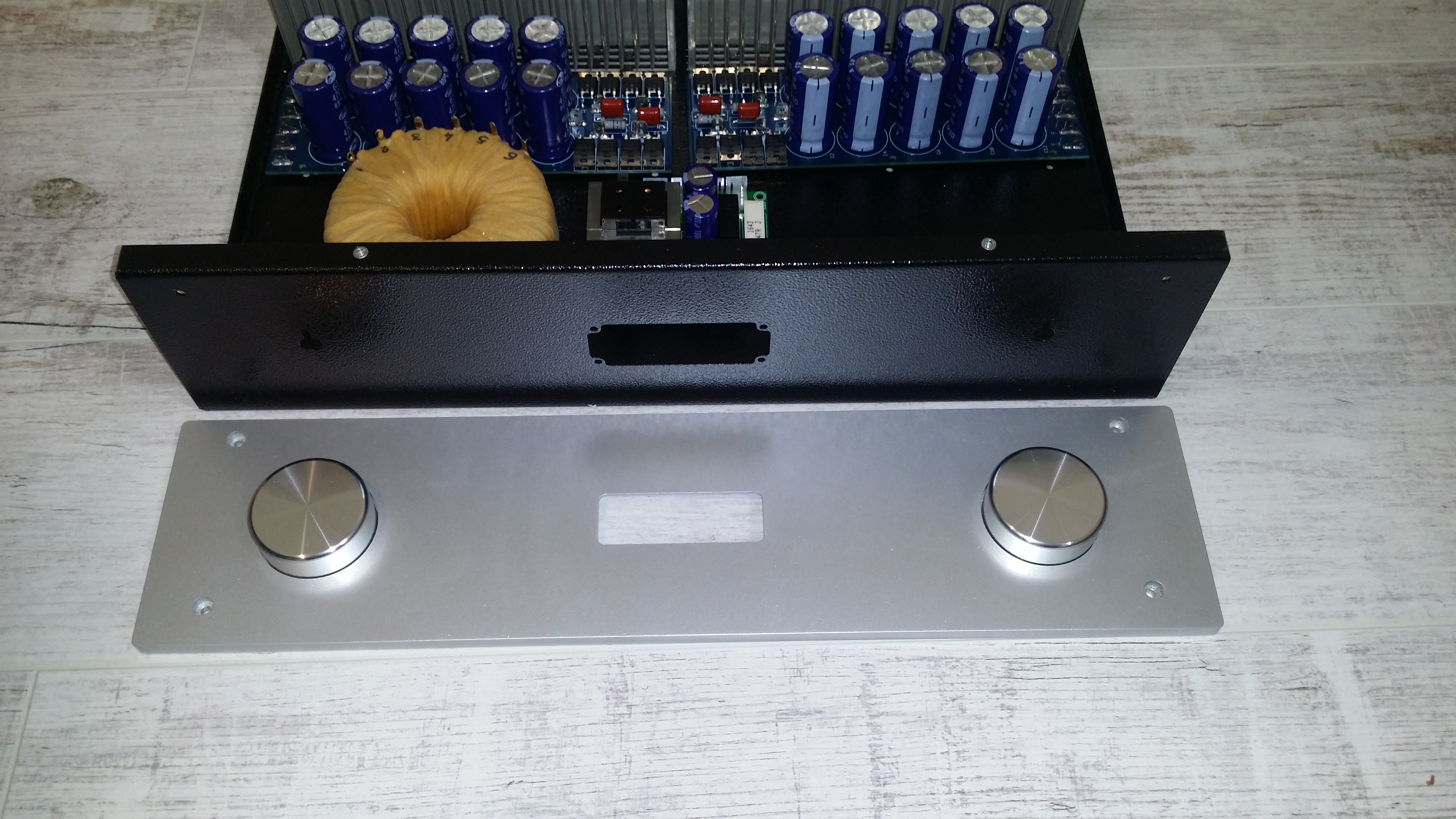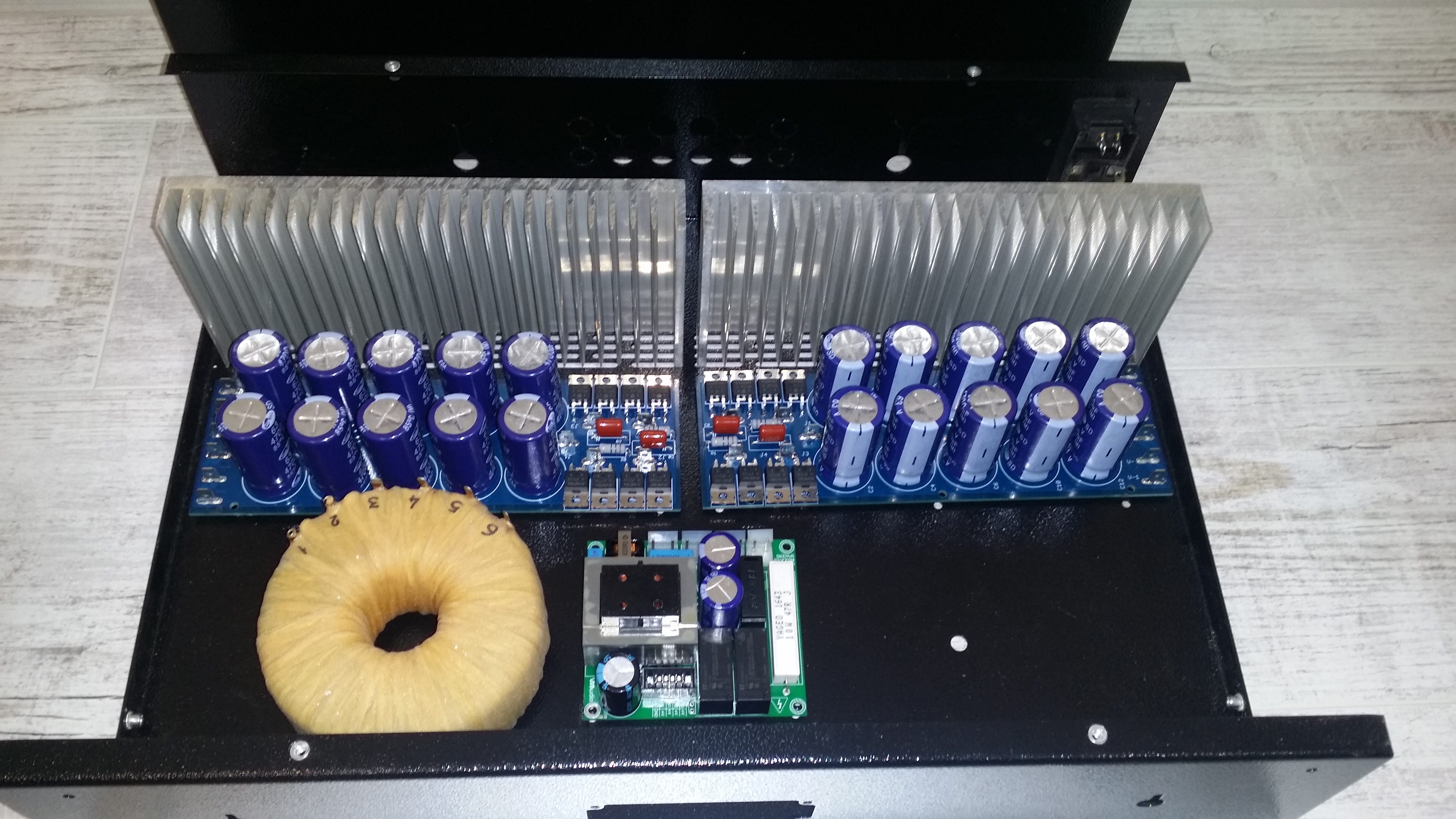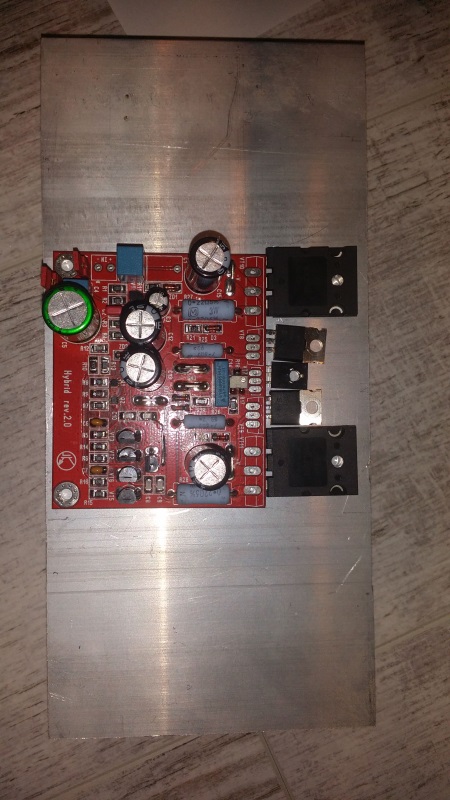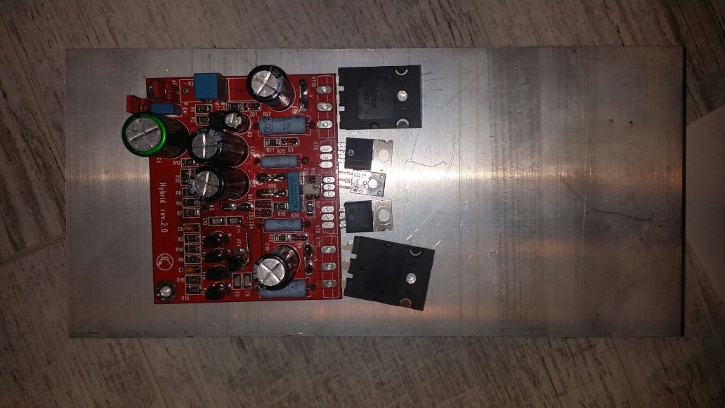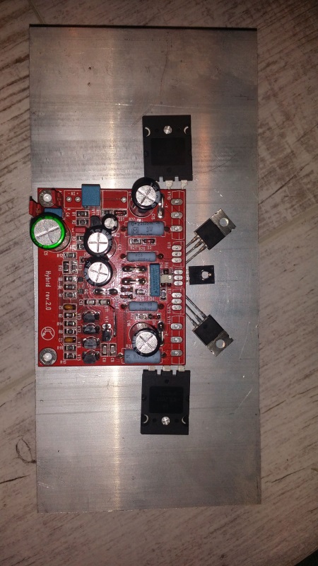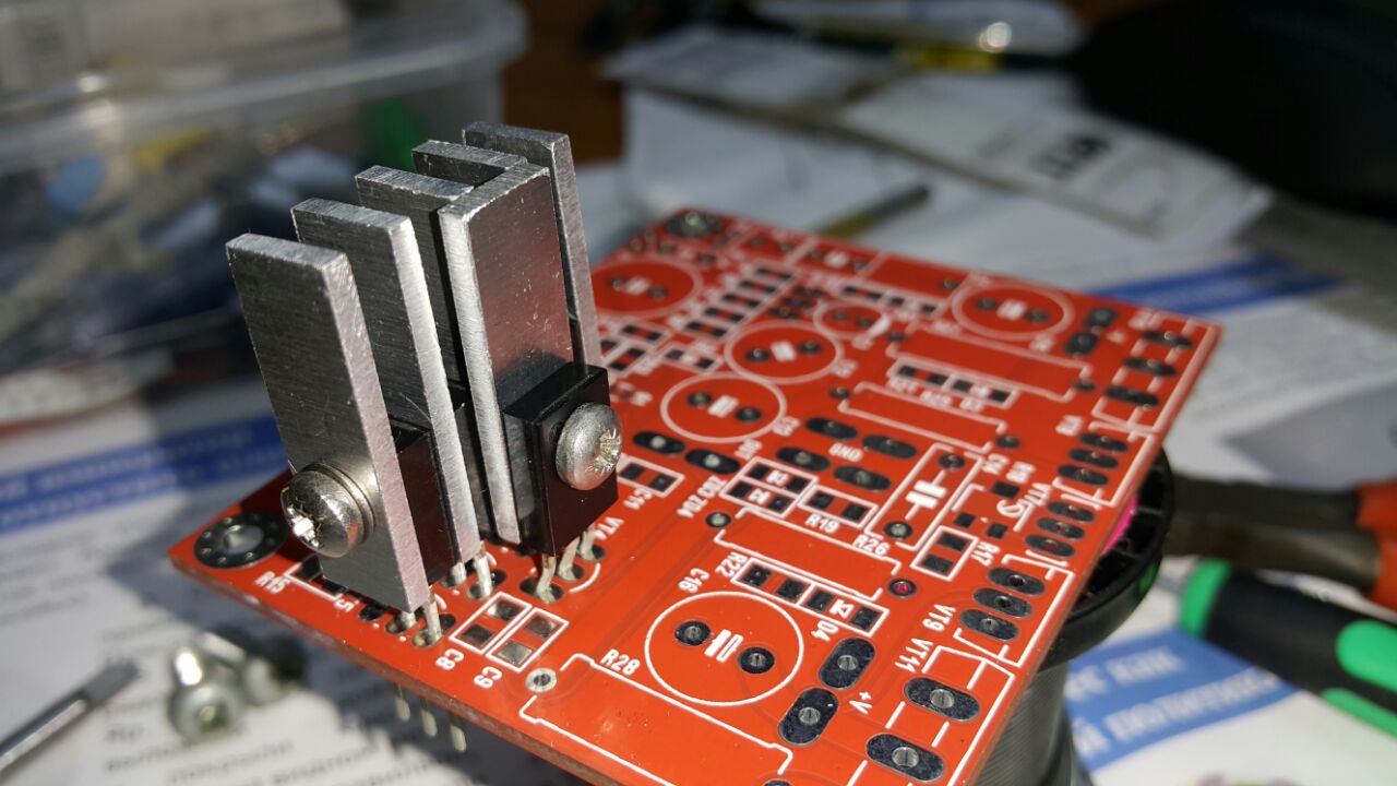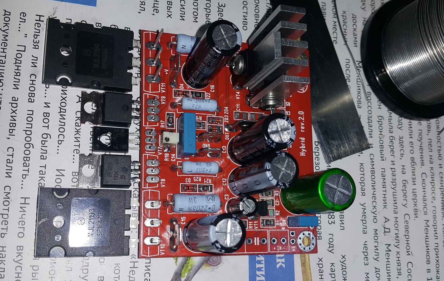 Осталось установить подстроечный резистор R18 и выходные транзисторы. Жду корпус с радиаторами. Впаивать эти транзисторы буду после установки их на радиатор.
