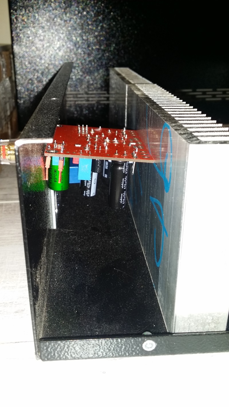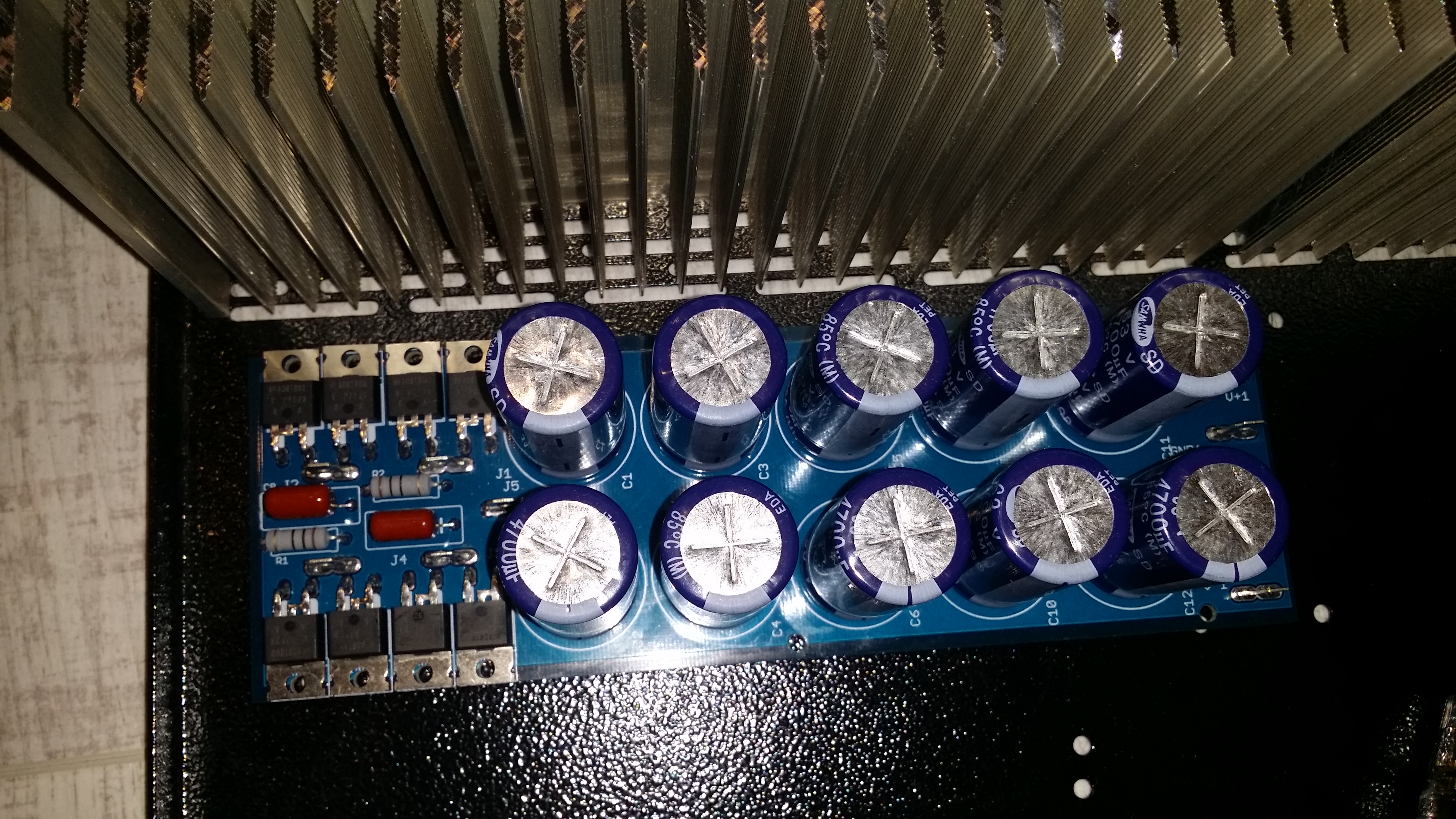 Ещё нужно учесть ,что довольно затруднительно будет прикручивать транзисторы к радиатору при перпендикулярной установке ,отверстия перекрывают электролиты .
