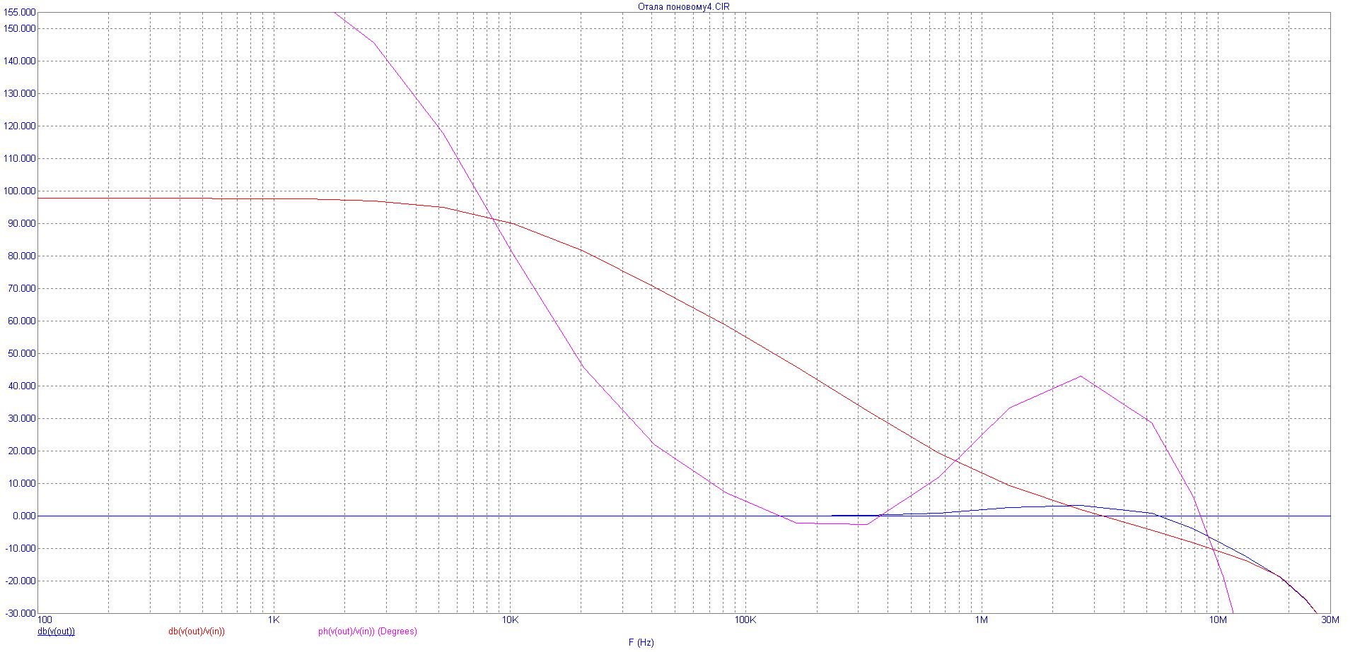 Сделал попытку увеличить петлевое усиление .Ввел токовые зеркала во второй дифкаскад .Запас все те же 40 градусов . Кап нарисовал снижение искажений .Но это не суть важно.Вот такая картинка. По сути вариант номер три имхо самый предпочтительный. офф АФЧХ в точности ,как у прокаченного авшника на базе Гумели/Шмидта, токма искажений поболе