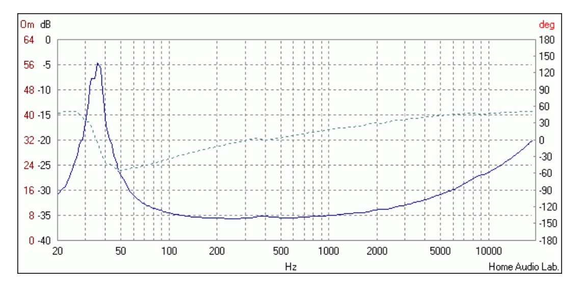 На примере динамика BG20 видно, что нулевая фаза импеданса, соответствующая его активному характеру, наблюдается лишь в очень узких частотных полосах.