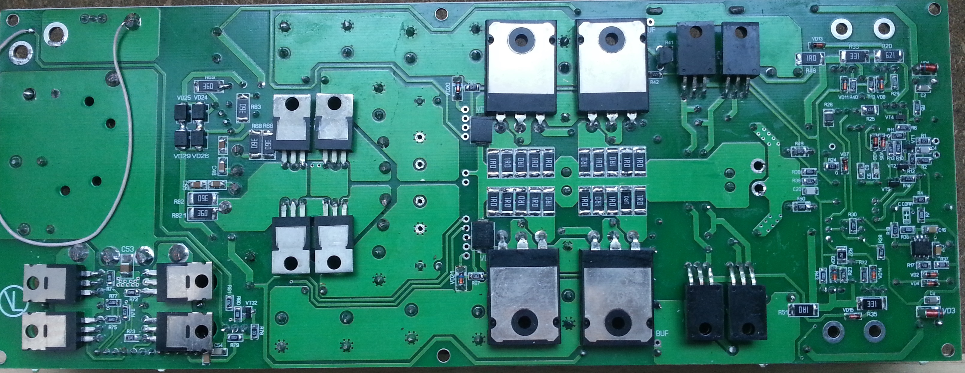 Также для уменьшения помех от преобразователя желательно транзисторы VT27-VT30 силовых ключей и диоды VD22, VD23, VD27, VD28 выпрямителя питания ВК прижимать к общему радиатору через толстые изоляционные прокладки - керамические или из Номакона в пару слоев.