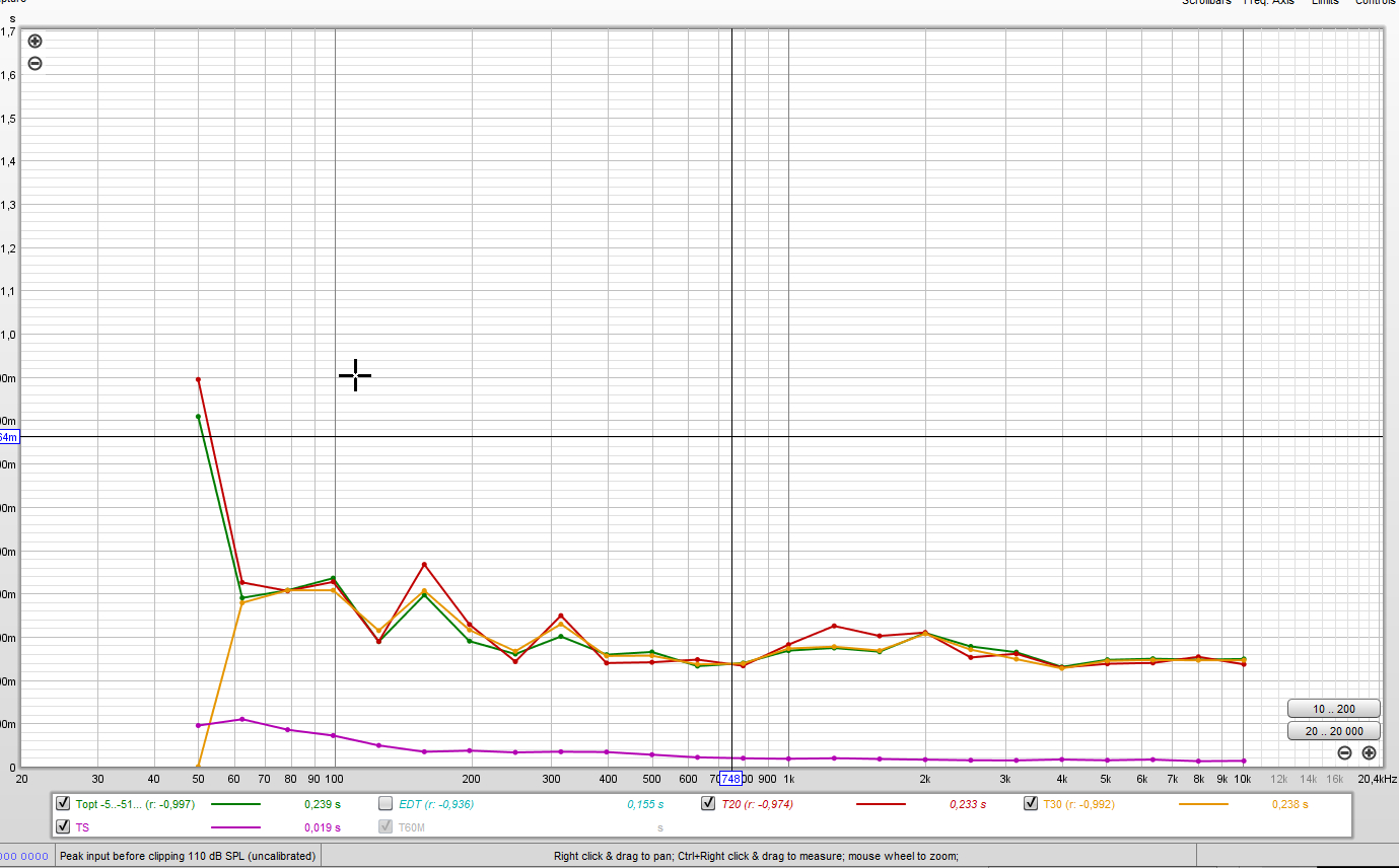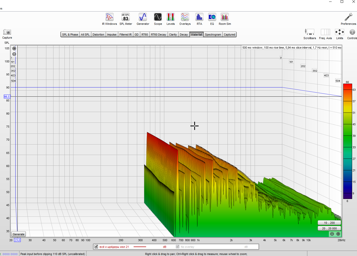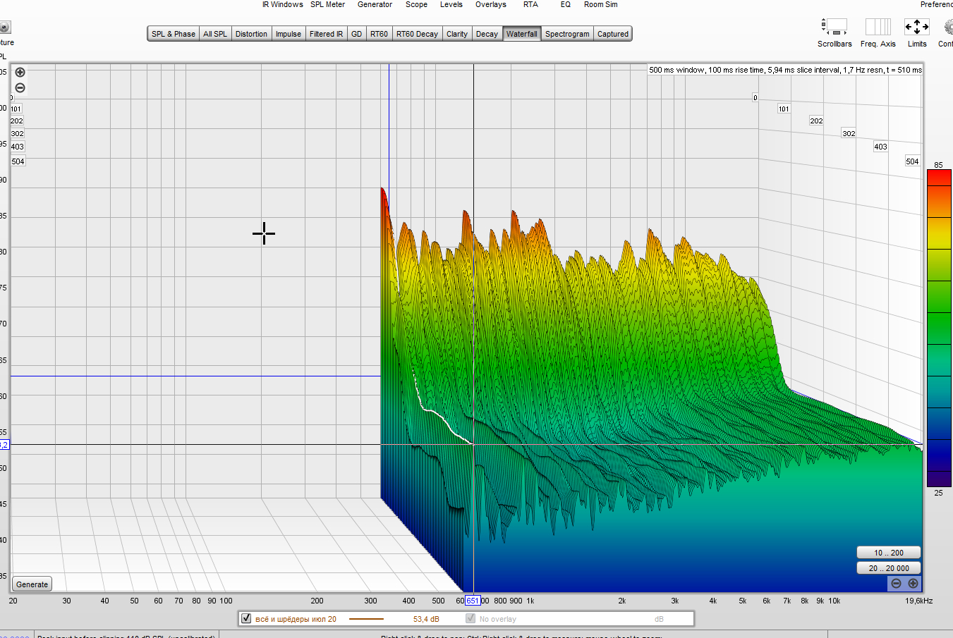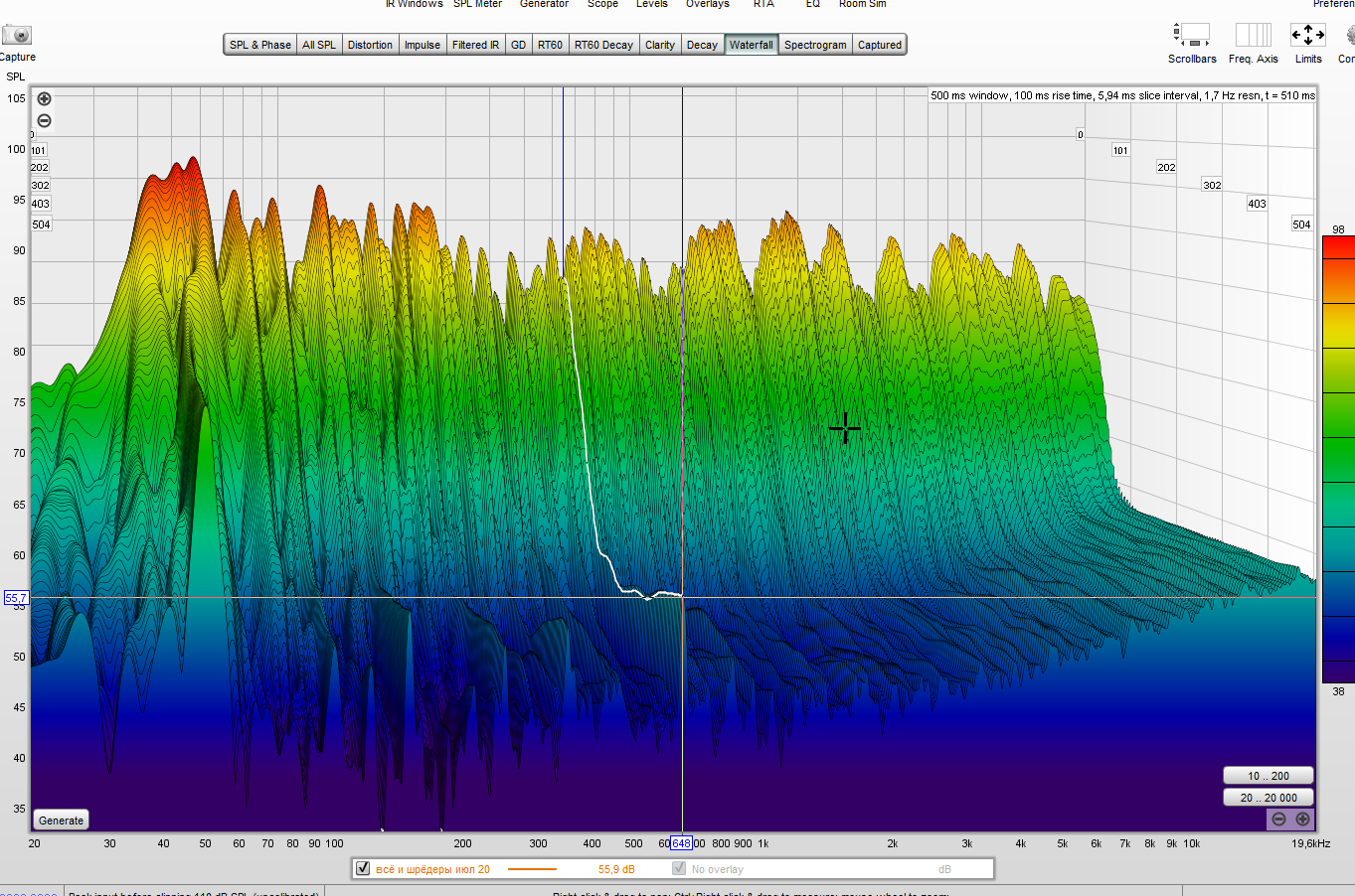 Rt60 вроде в норме с 200Гц. Но в виду того что вид ватерфола "расчистился" стало видно пики которые раньше скрывались за шумом.