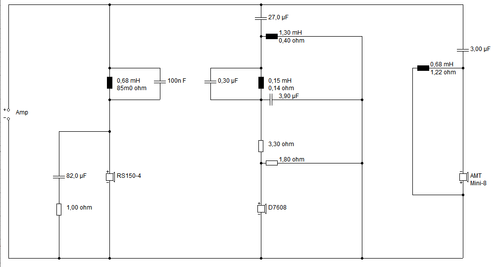 AMT Mini-8 по импедансу просто резистор, т.е. нагрузка ВЧ УМ - RC цепочка 3.3мкФ и 8Ом.