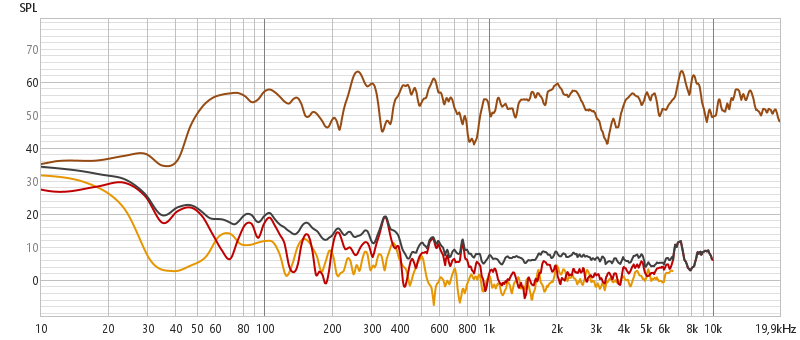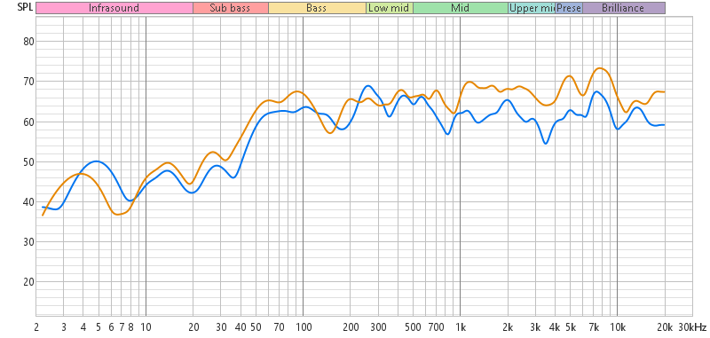 АЧХ голубой с места прослушивания ~2m, оранжевый - 1m по оси.