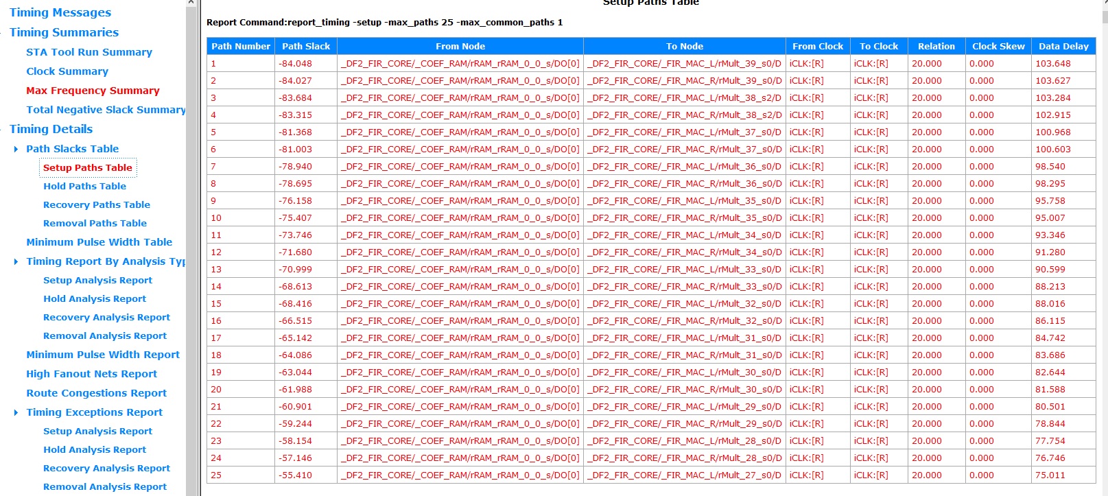 1. Смотреть репорт: между какими именно регистрами максимальная задержка. И какой вообще расход ресурсов, может что-то в коде поломали и не собирается как надо.