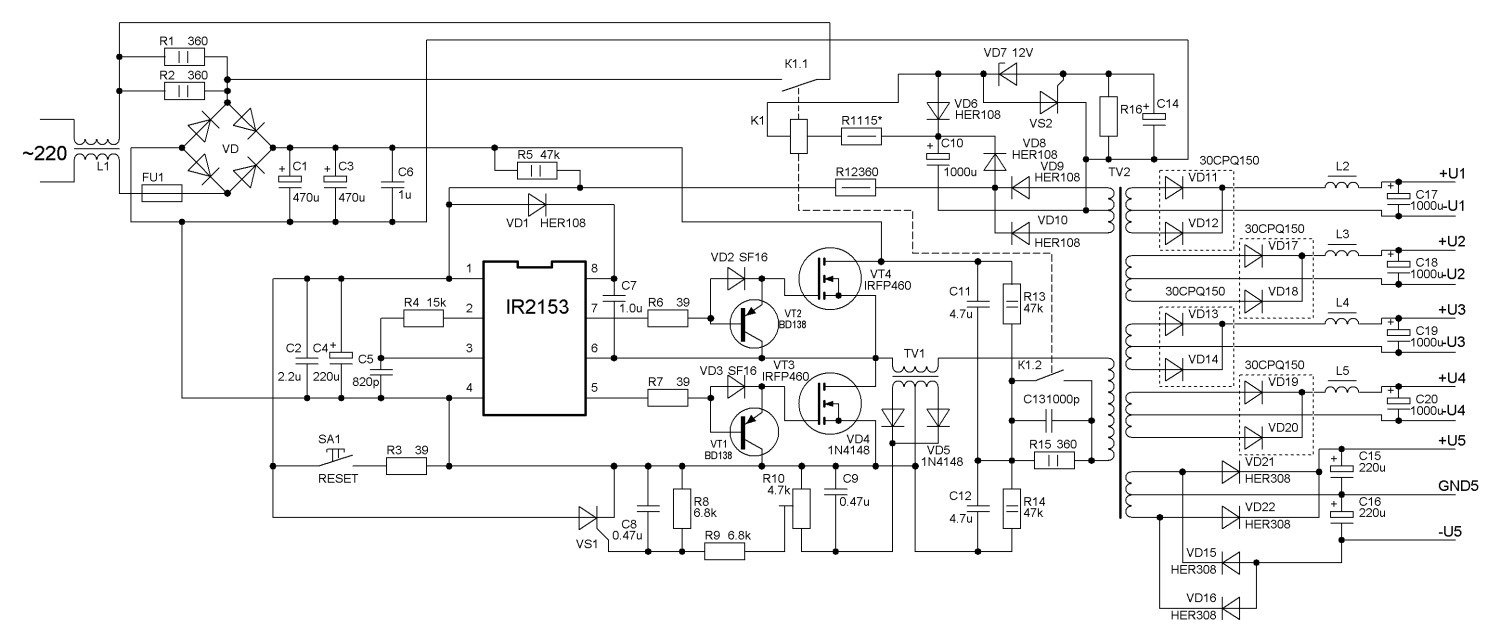И вообще заявленная мощность в 1кВт не много ли для данной схемки? Читал мнения что больше 400Вт на IR2153 лучше не выжимать.