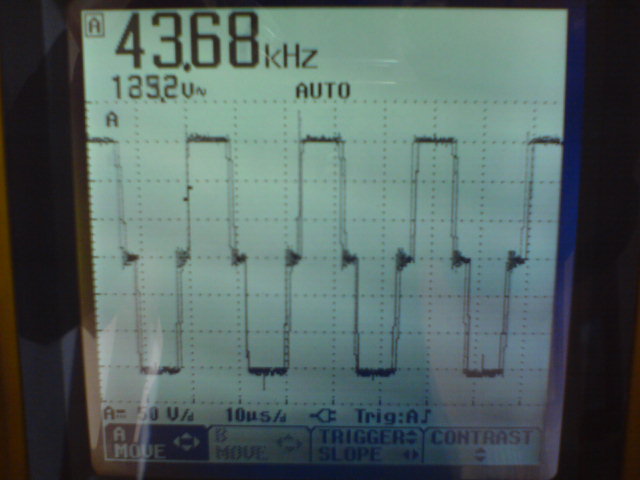 witali, на затворах разнополярные импульсы одинаковой амплитуды и длительности(транс в драйвере), а если очень интересно, то только завтра(БП и флюк на работе). Ещё на полной нагрузке сфоткаю.