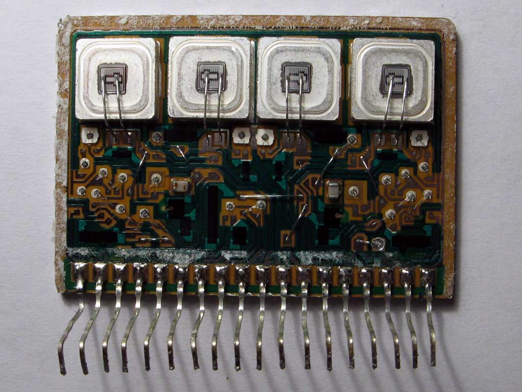 Для начала вводная - это не микросхема, это гибридная интегральная схема. Толстоплёночная. Конских размеров.