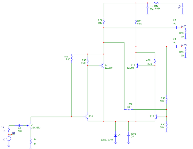 То, что ниже в статье - это так, мысли вслух про возможные варианты. К тем могу еще добавить вариант с одним оу и Т-образной ОС, но на мой взгляд он преимуществ не имеет (кроме экономии одного оу, но это экономия пустая, т.к. по цене ничего не выигрываешь и по габаритам тоже - корпус точно такой же). И еще обсуждался вариант по снижению нелинейных искажений самого капсуля (вернее полевого транзистора в нем), путем перевода оного в "линейную" область. Для этого нужно снизить напряжение на капсуле с 2В до примерно 0,35В - см. графики ниже. Такой вариант требует специальной схемы для компенсации температурного дрейфа полевика. Те, кто сильно заморачиваются параметром THD в своем микрофоне (по данным симулятора искажения падают в 10 раз - с 0,45 до 0,05%, на самом деле может быть и по другому - в микрофоне есть еще другие источники искажаний), могут попробовать заменить источник опорного напряжения (у меня это светодиод) на схему, выдающую напряжение 0,35В при 20 градусах и имеющую температурный коэффициент 2,0-2,2мВ на градус (плюс, т.е. с ростом температуры напряжение должно повышаться).
