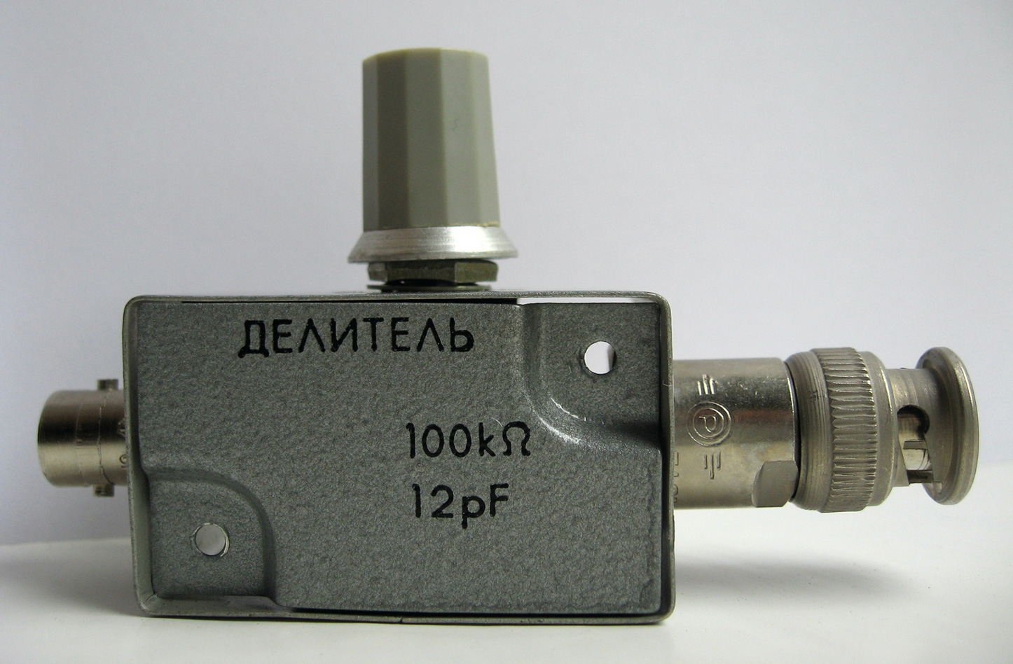Теперь цель понятна, только непонятно, какое отношение к ней имеет делитель осциллографа - в качестве примера, что ли? Он, кстати, содержит помимо резисторов еще и компенсирующие емкости. Добавлено. Да и номиналы в делителе осциллографа на порядок выше - справедливости ради.