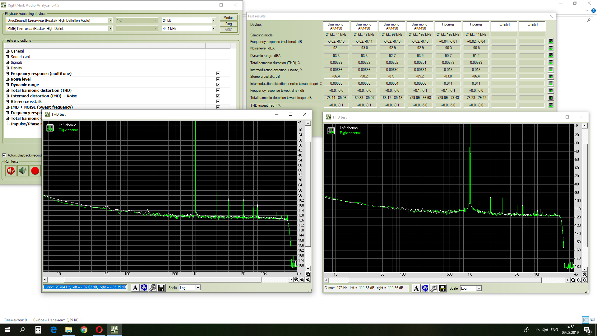 Здравствуйте. Решил проверить свой ЦАП AK4490 Dual mono в программе RMAA. По скольку это мое первое тестирование и сравнить мне не с чем, прошу знающих, сказать на сколько все плохо))). На фото слева ЦАП справа шнур. Ссылка на отчет RMAA: Скачать