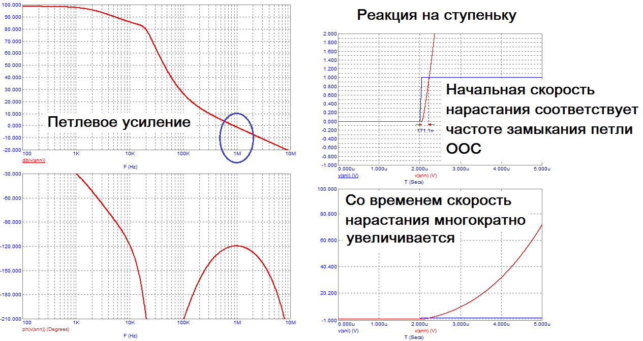 Почему для замыкания устойчивой ООС важна фаза только на частоте замыкания ООС? Потому что реально петля работает (реагирует) именно со скоростями, которые соответствуют этой частоте.