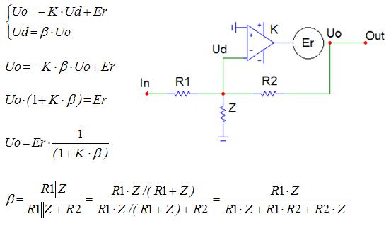 С другой стороны, часто доводится слышать утверждения, что поскольку входной и выходной сигналы от подключения такого резистора не меняются, то и глубина ОС неизменна. Картинка для ОУ с сигналом ошибки "Er" иллюстрирует некорректность такого подхода: