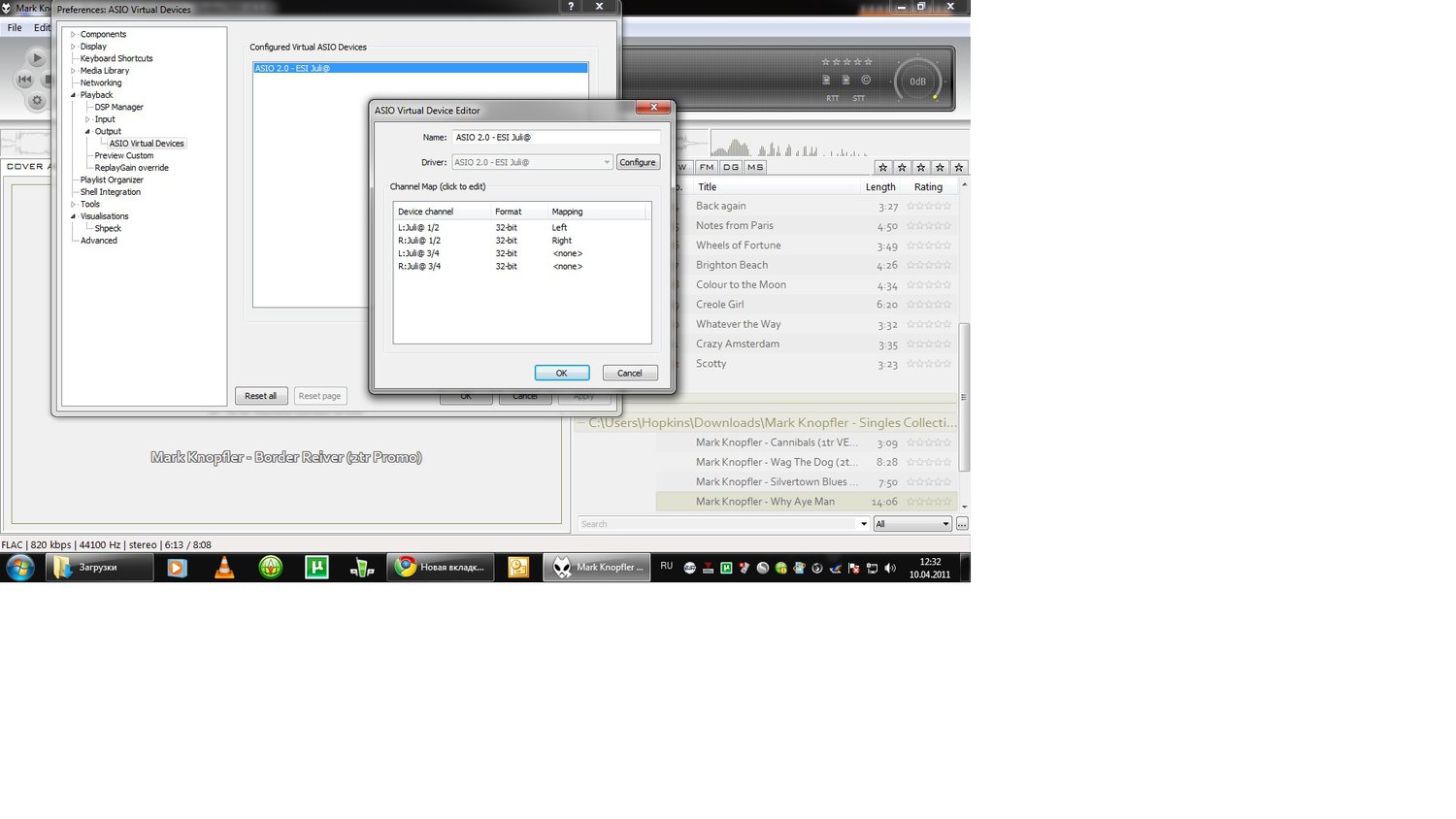 смотрю в output - device - далее выбор: динамики juli@ audio , цифровое аудио spdif juli@ , первичный звуковой драйвер и null output.