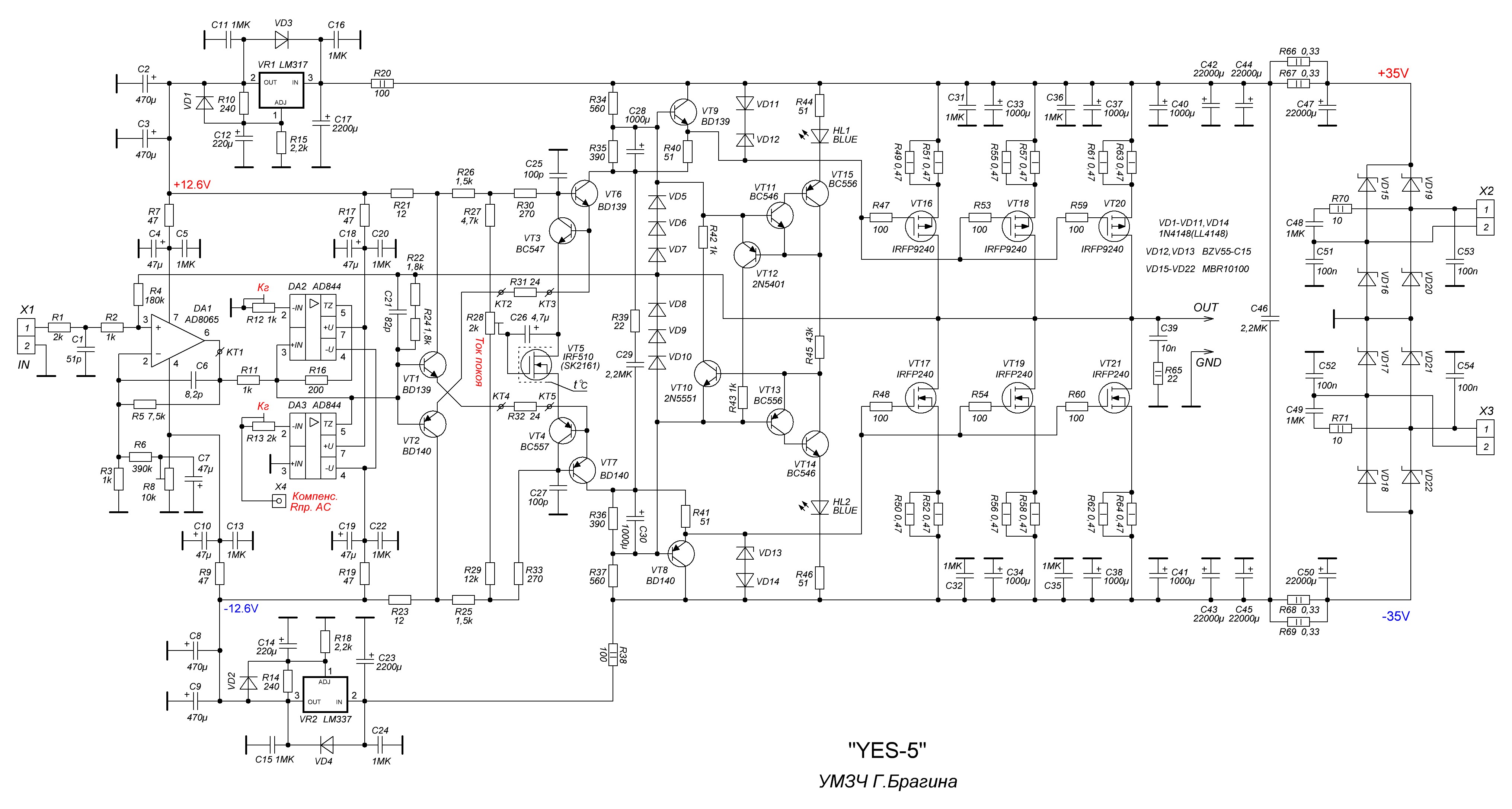 Геннадий, может уже перейдем на напряжение 40-50В? То есть схему уже сразу под него сделаем. Почему в течении многих лет идет строгая привязка к 35В? Для такого усилителя маловато, лучше сразу делать на 80% от максимально возможного. Нормальная мощность усилителя 100-150Вт/8ом.
