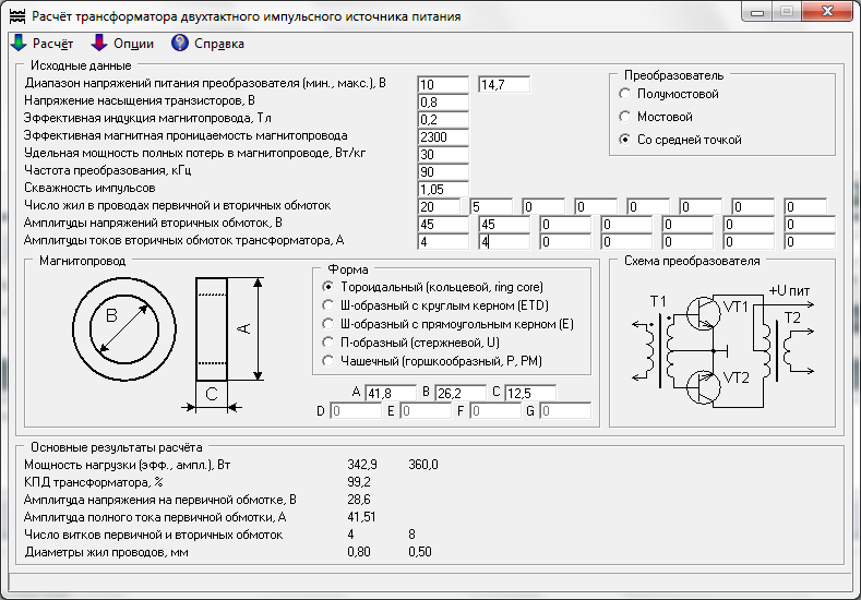 Меня вот тоже беспокоят расчеты программы. Слишком уж мало витков для первички насчитывает она. Вот