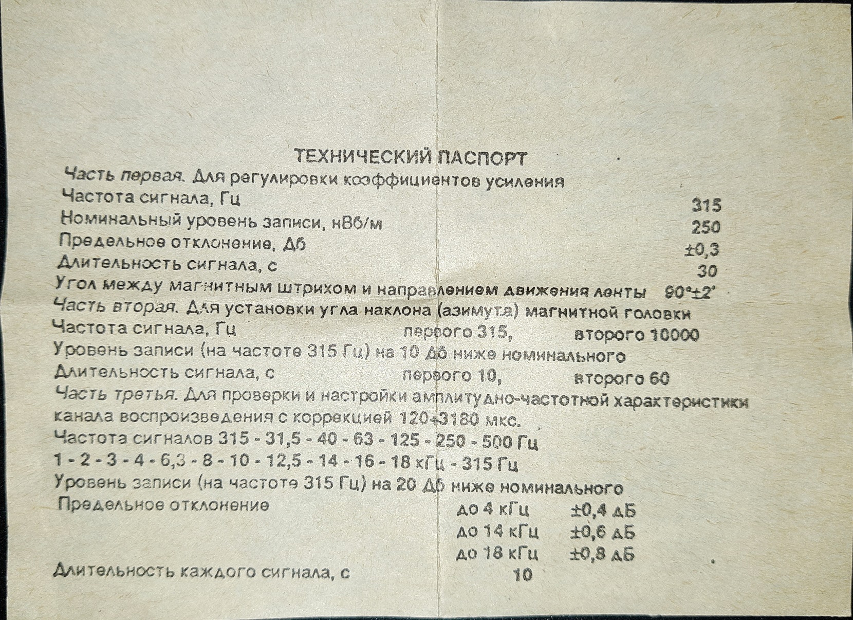 TheCalligrapher, Паспорт ленты. Там только опечатка, частоты 3 кГц нет в последней части.