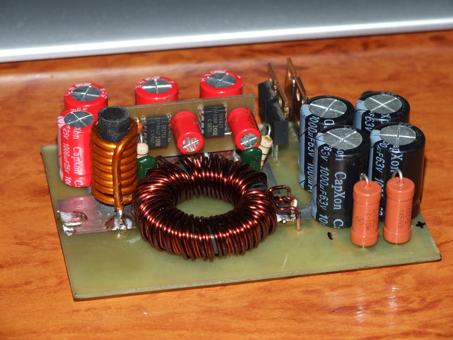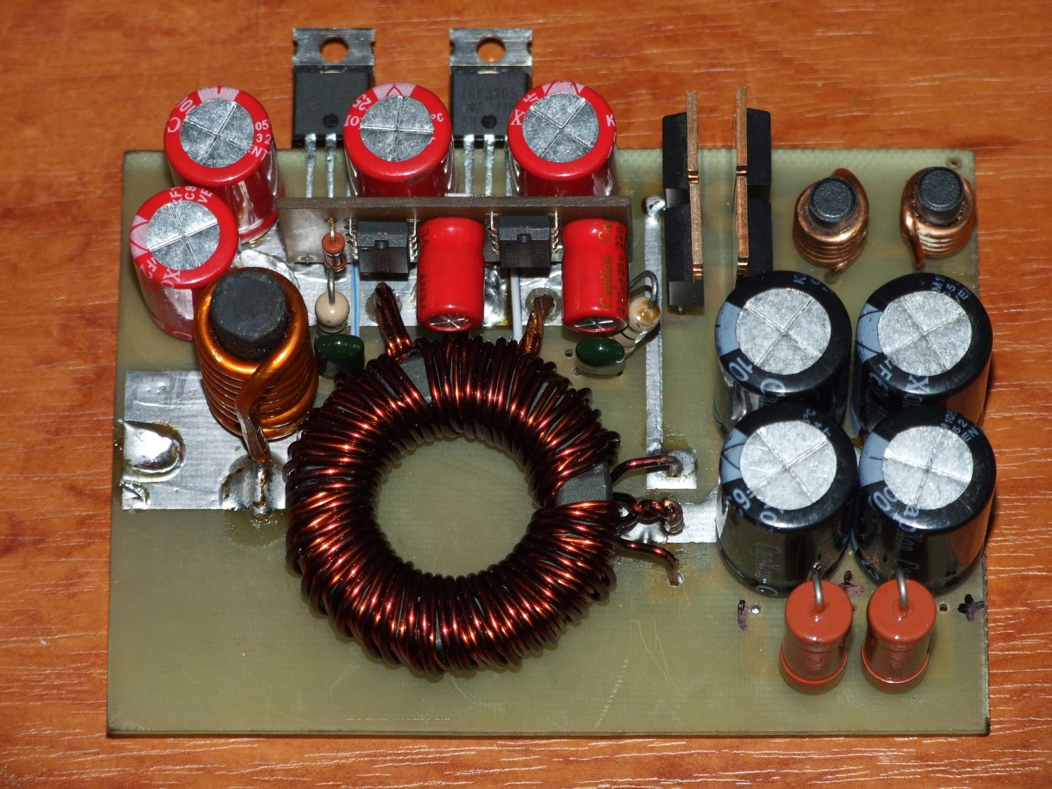 В общем я доволен как слон! Очень маленький и экономный преобразователь получился и главное что мощный! Спокойно переваривает два усилителя по 150 вт каждый.