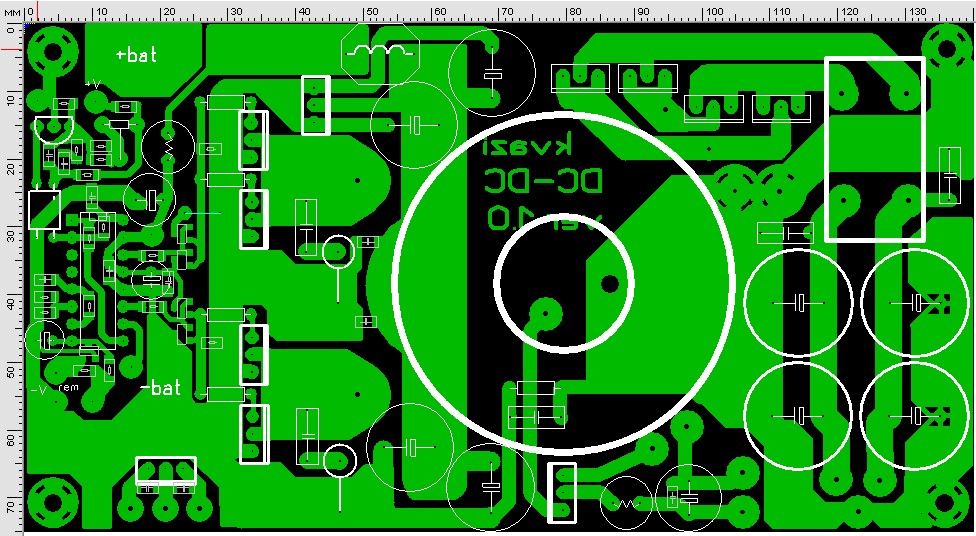 Привет! Вот наконец то собран и проверен в тяжелом бою почти финишная ревизия платы опытного образца! Плата размером 106мм на 75мм Питание было 14,5 вольт. На выходе преобразователя на х.х. +-44 вольта.