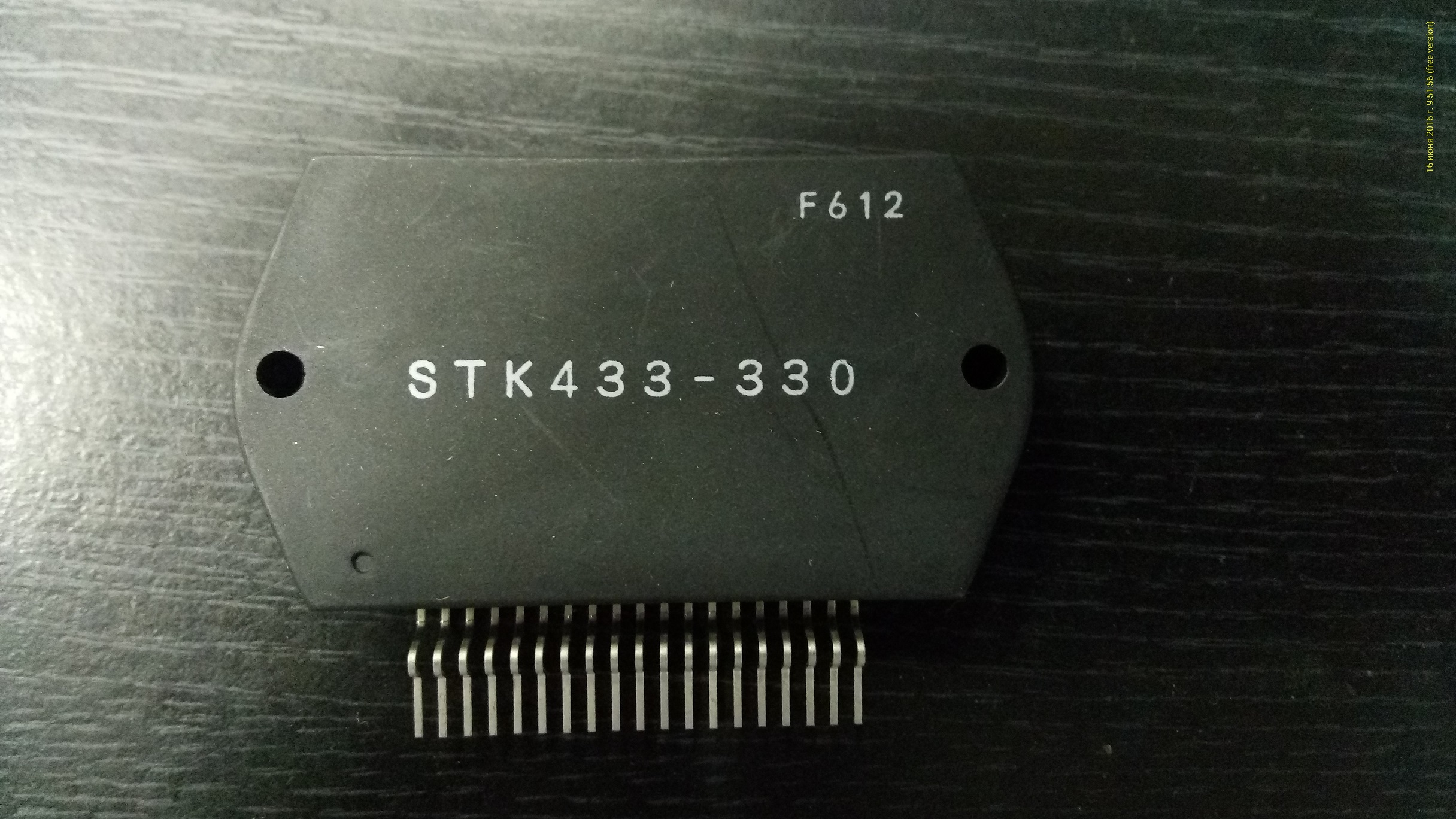 Здравствуйте, зарегестрировался здесь чтобы попросить помощи в определении степени оригинальности микросхемы STK433-330. Каюсь, не поискал в интернете информацию о возможных подделках этой микросхемы так как до сих пор, всё что заказывал на алиэкспрессе, приходило заявленного продавцом качества. Но тут пришло вот такое чудо. На фотографиях продавца эта гибридная микросхема выглядит так же как установленная в усилителе который принесли мне для ремонта.