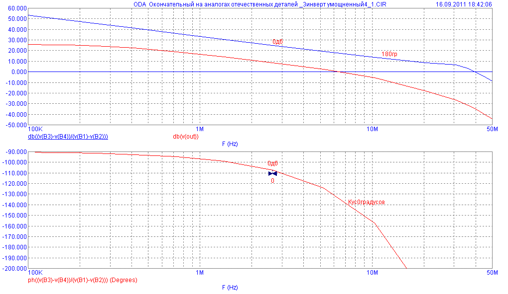 Вопрос к профессионалам. Можете растолковать данный график АЧХ /ФЧХ ? Достаточно устойчивости или уменьшать сдвиг при нулевом усилении с разорванной общей ООС.