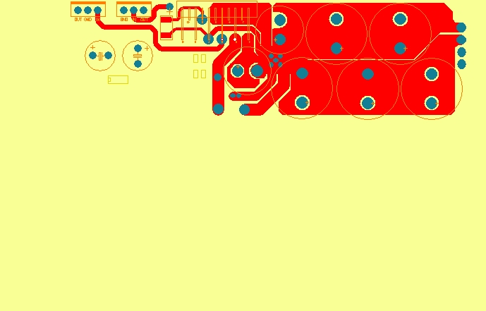 С близко стоящими кондёрами у меня другая платка есть, но там питание немного по-другому сделано. А в этом варианте не последнюю роль играет размер платки . А вот посмотрите - часть питания совсем новой версии, лишнее убрал, чтобы не смущало .