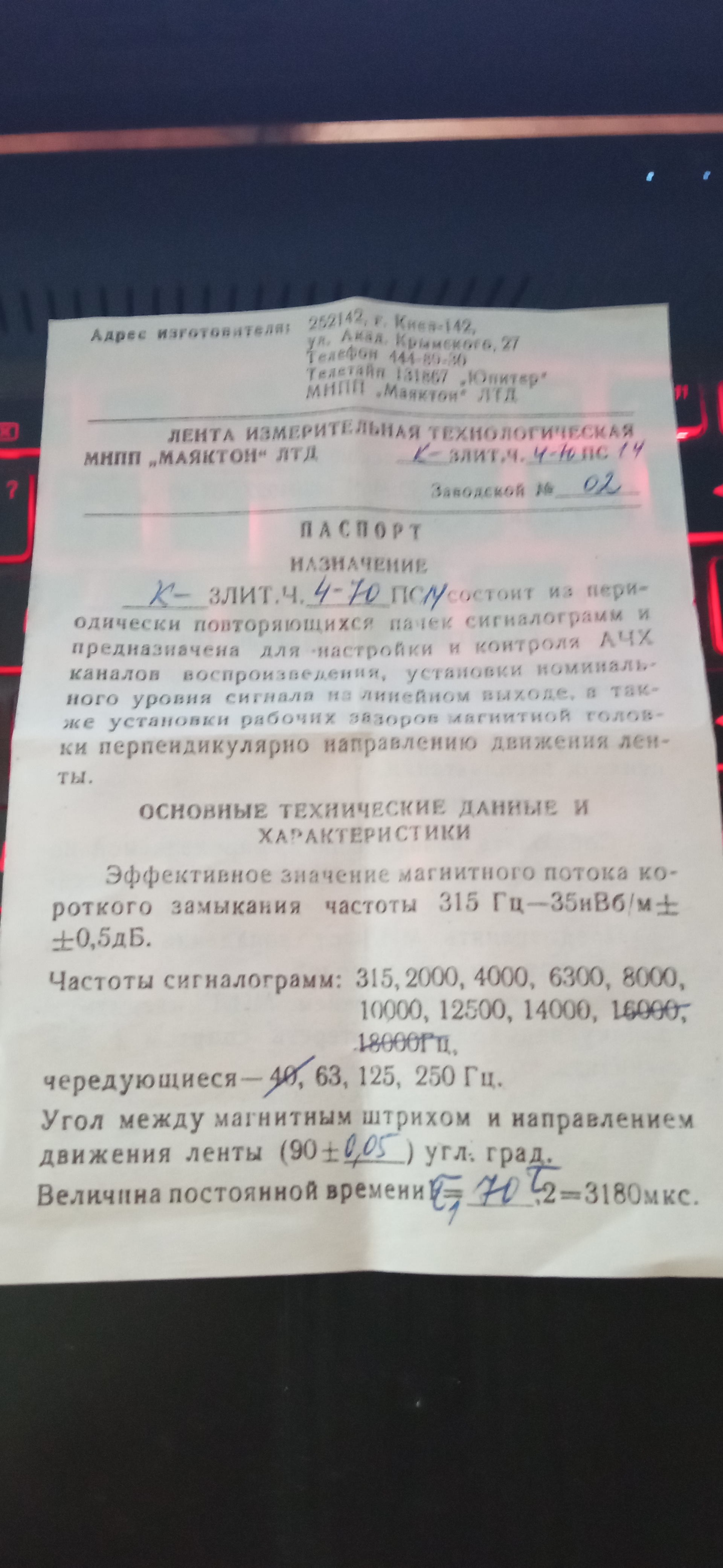 TheCalligrapher, если P 4 L300 считать 160 nWb/m то китаянка дает 250. Я танцую от напряжения на линейном выходе деки sony указанного в сервис мануале при настройке на ленте P 4 L300. А дальше мне просто уже не нужна P 4 L300, я знаю сколько надо накрутить на китаянке и отсутствие консенсуса на тему того, какой же все так уровень должен быть записан на соневской L300... жить и настраивать уровень воспроизведения не мешает. Мало того , пока все настроено , можно и свою кассету записать, пригодится для подстройки хоть и не на всю ширину.