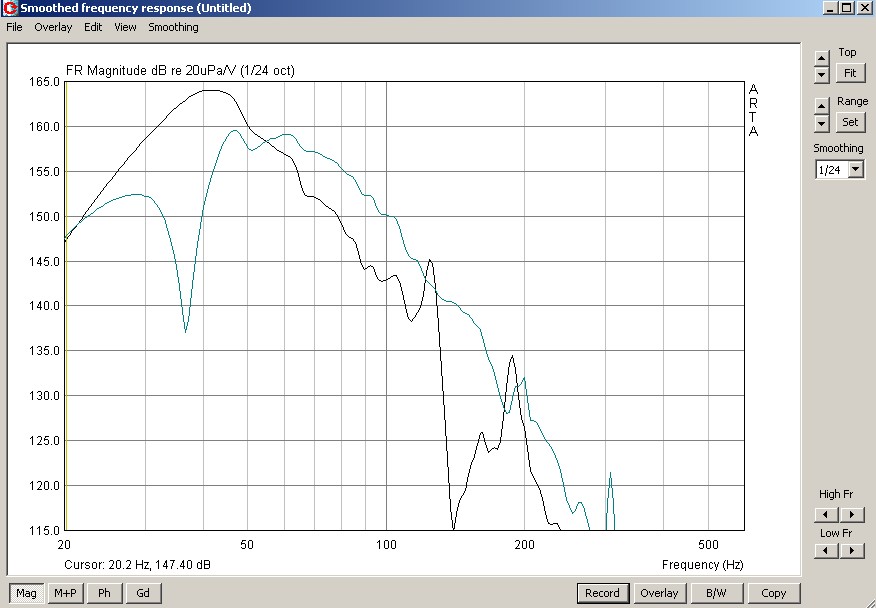 У меня к вам просьба, вы правда уже рисовали нужную линию, но попрошу вас еще раз нарисовать на ваш взгляд идеальную более детальную линию АЧХ для моей конструкции по низкой стороне. На скрине АЧХ сейчас, динамики в параллель, расстояние до мкф 1.5 метра, вот прямо рядом с существующей, вашу - на которую буду ровняться и принимать меры.