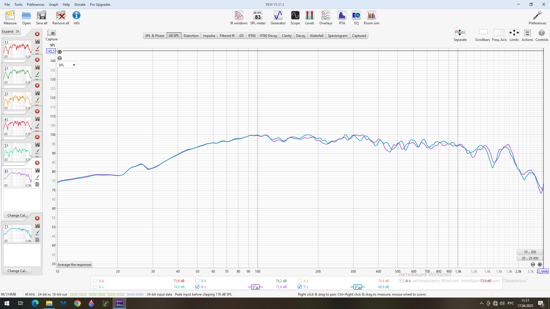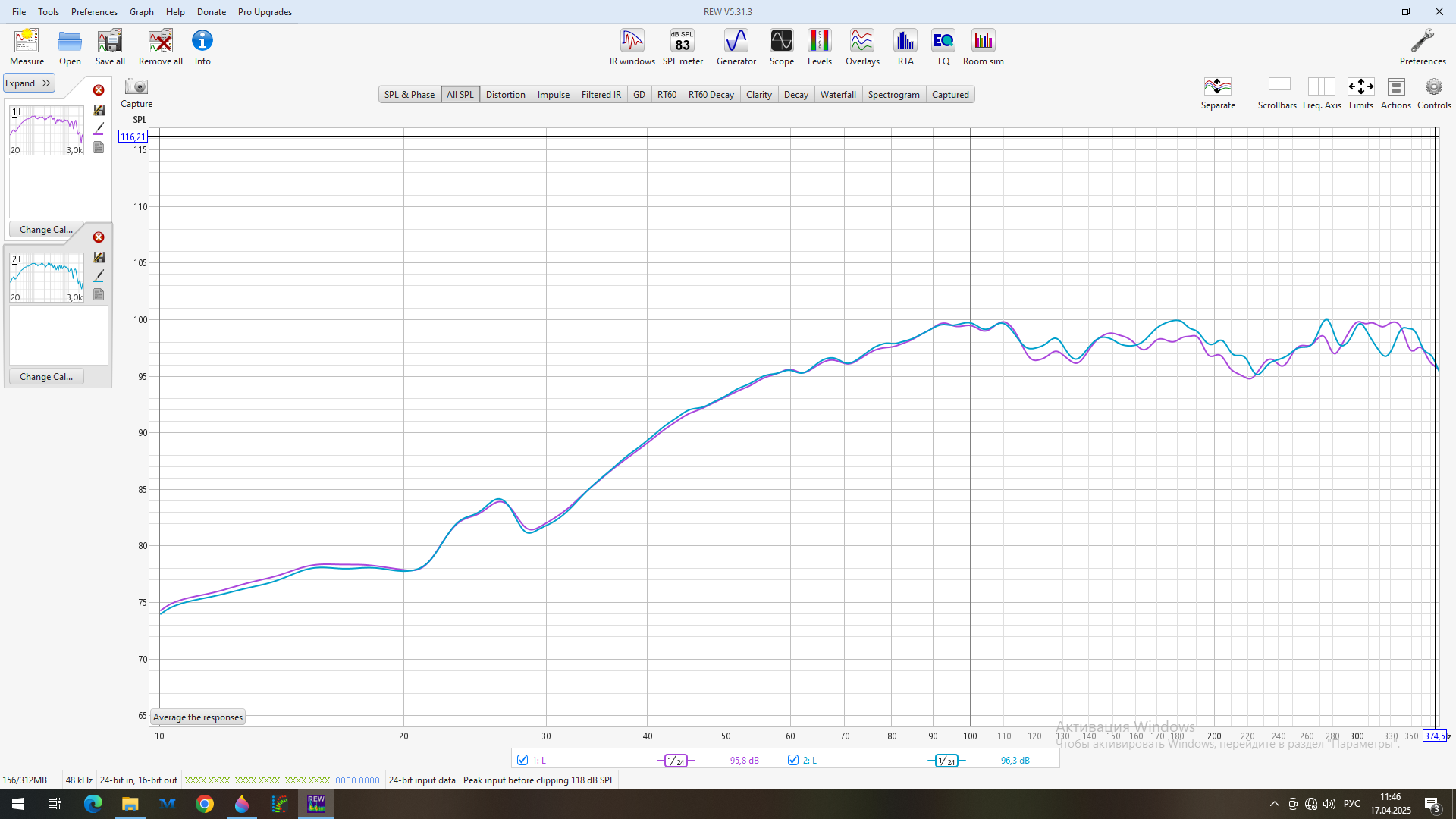 На скрине АЧХ сейчас, динамики в параллель, расстояние до мкф 1.5 метра,