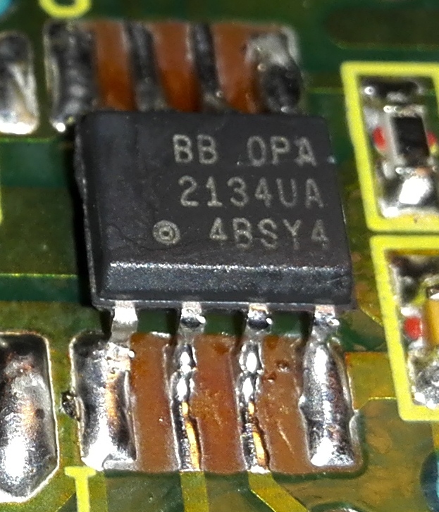 У меня в SONY CDP-XA555ES на OPA2132UA вообще была маркировка лазером 2 едва заметные буквы BB сбоку (не по центру ОУ), без всяких рамочек
