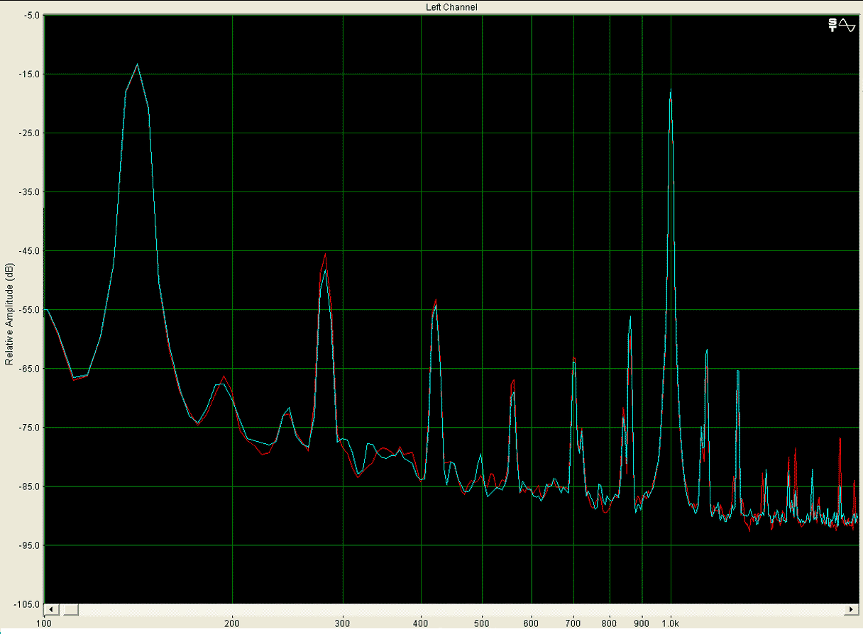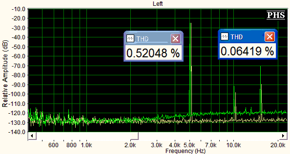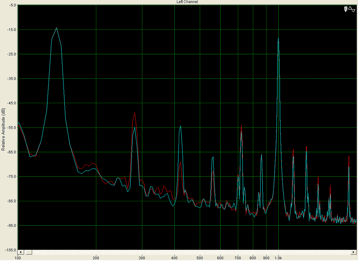 В случае Н602 увеличение выходного сопротивления привело к некоторому снижению гармоник тона 140Гц, но увеличило на 3 дБ первые интермодуляционные гармоники тона 1кГц (860Гц и 1140Гц).