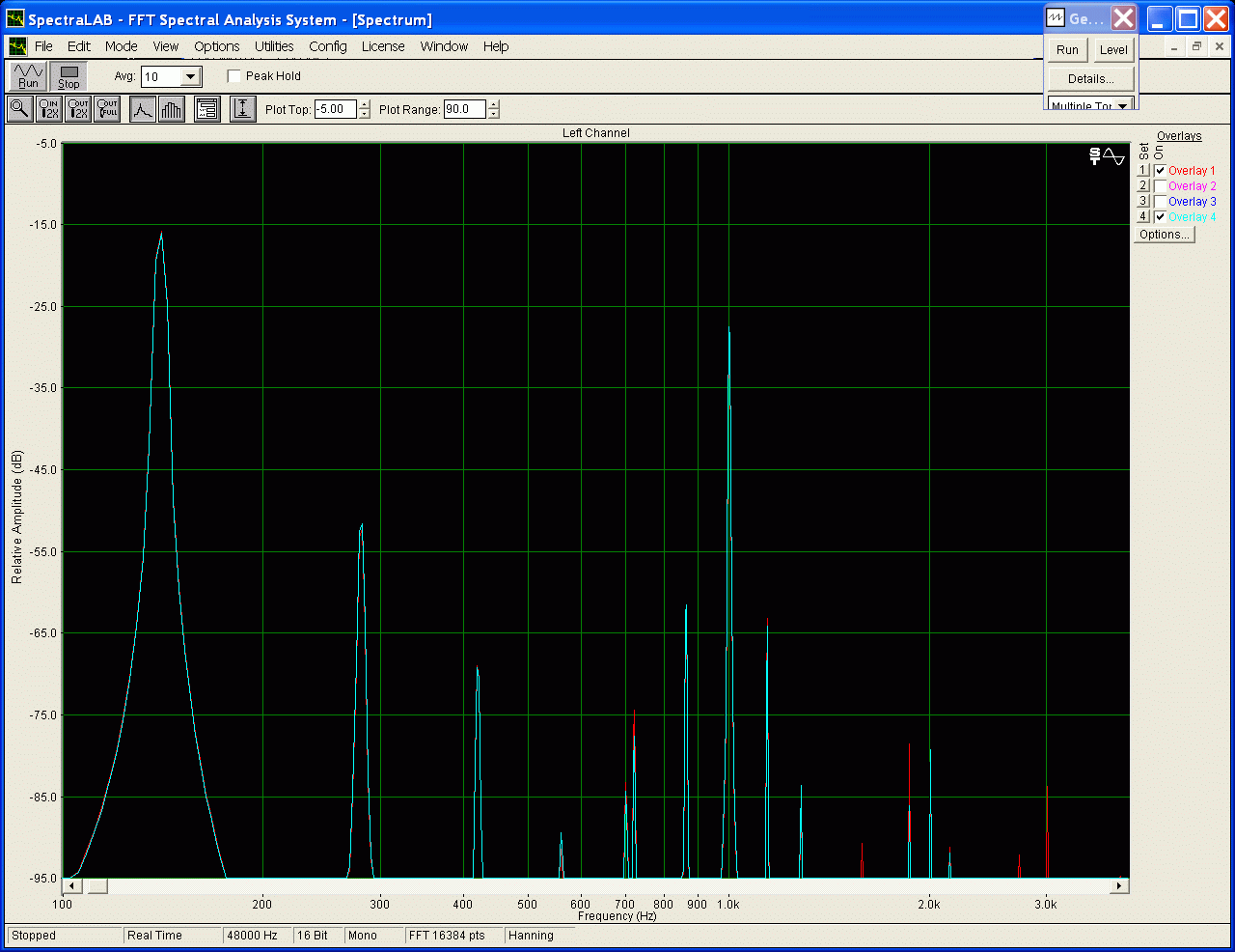 Предлагаю в этой ветке обсудить особенности работы ДГ про работе от усилителей типа ИНУН (обычный УНЧ) и ИТУН (усилитель с высоким выходным сопротивлением). Подопытный среднечастотный динамик - 25ГДС1-8 (RRR) в боксе 4,5 литра (13х22х16см) с заполнением ватой. Питается от усилителя, режим работы которого ИНУН/ИТУН переключается вручную. Собственные искажения усилителя - 0,008% в полосе рабочих частот. Микрофон - динамический типа SPC MD100 (Philips), включенный в обычный микрофонный вход звуковой карты. Не калиброван.