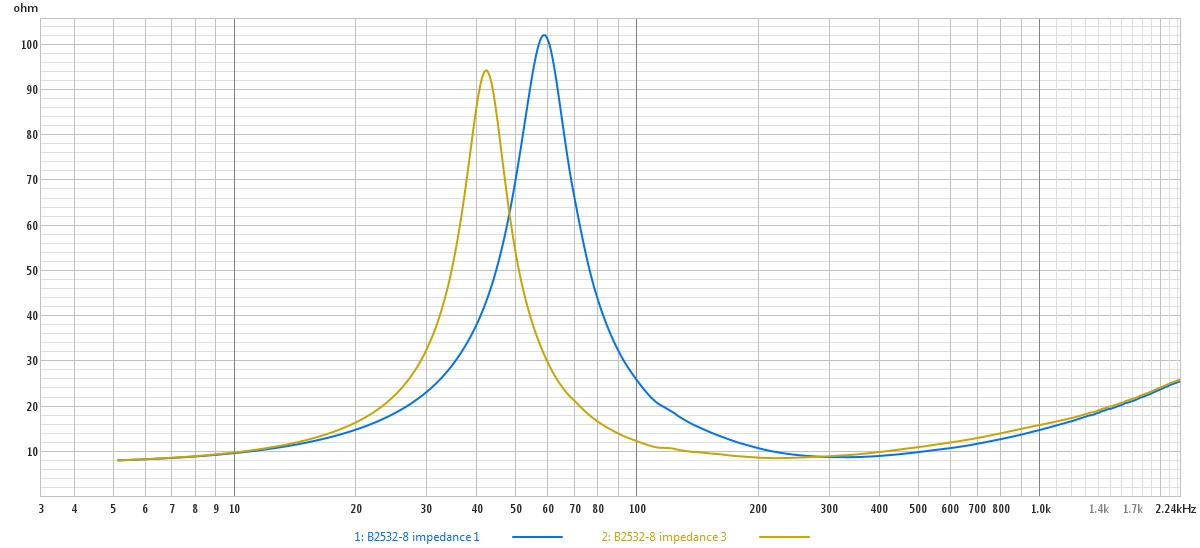 Импеданс фриэйр (динамик закреплен в приспособлении, горизонтально, отверстие керна свободно, никаких табуреток):