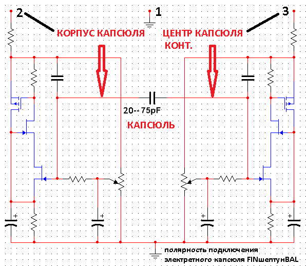 И возможное небалансное подключение капсюля. Насколько критичен выбор "100пФ/100пФ" - неизвестно.