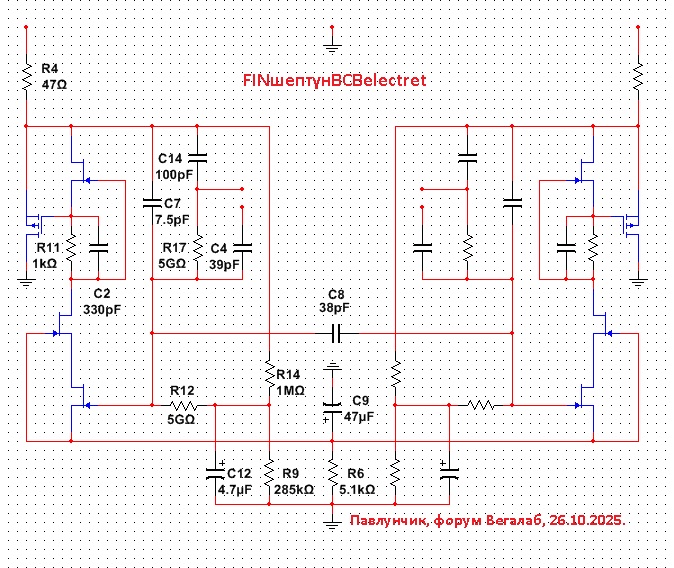 Интересная битва за устойчивость работы "простого" ОООС-повторителя широко применяемого rode (упрощ.), neumann, в DIY, китайских репликах, наш вариант- FINA2. Столь длинный список мер, включающий спец-разводку, спец-металлоконструкцию, спец-элементы - позволяют себе лишь крупные фирмы с большим опытом. В схеме маячат дополнительные элементы не относящиеся к работе усилителя в звуковом диапазоне но частью влияющие на звучание. Здесь в качестве гигаомников используется малая утечка спец-диодов. С ними шум на НЧ поменьше но требуется дополнительная ПОС (в схеме присутствует. Нередко имеет паразитный характер) поскольку амплитуда на затворе входного jfet неимоверная по сравнению с трансимпедансным решением.