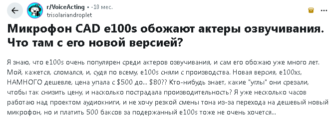 Фирма CAD когда-то воспользовалась высоким качеством передачи "2555" взвинтив цену за микрофон до 500 долларов. Позже пришлось снижать цену и отмалчиваться. Конечно не по причине плохого качества капсюля.