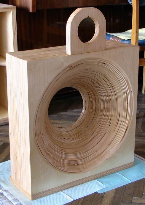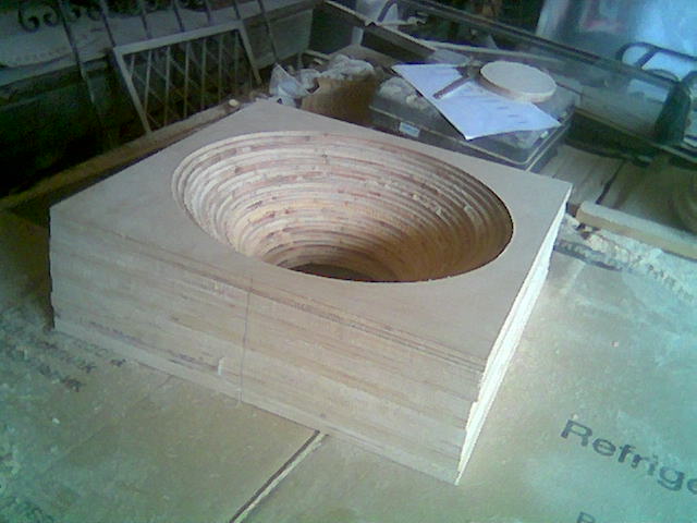 Набирать рупор из тонких листов фанеры по-моему выгоднее лишь в случае отсутствия фрезера. С фрезером, при наличии терпения и приспособы для окружного выбирания, - легче и меньше вероятность осевого сдвига пластин относительно друг друга.