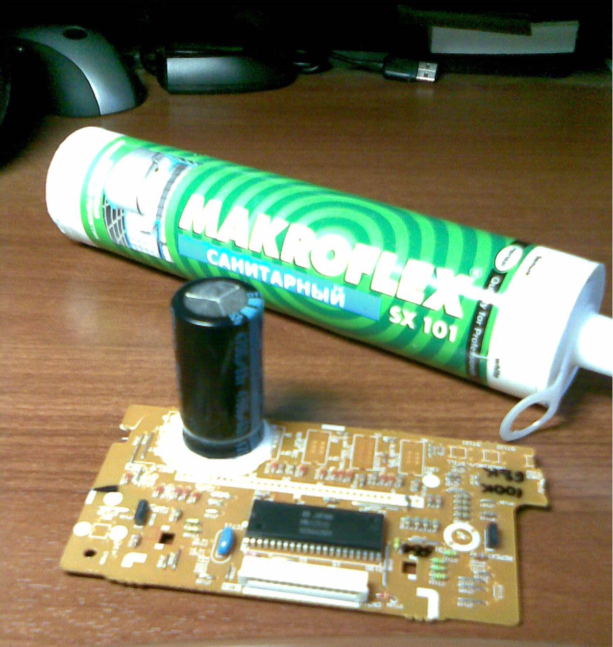 Вставил кондёр в плату и придавил. Излишки силикона обмазал пальцем вокруг конденсатора. На мой взгляд технология нормальная![]()