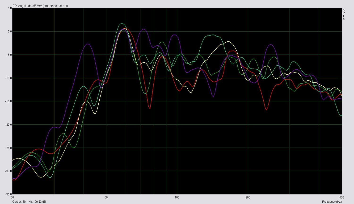 Сиреневая это так как в жизни стоят АС? А это с места прослушивания АЧХ? Ну похоже что вот то вот на 40Гц это он и есть. Хотя высоковато почему-то для 22м2 У меня 40Гц в 12м2.