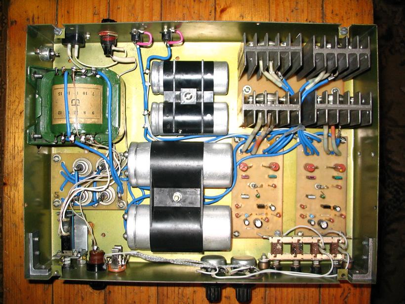Вот вполне оптимальное расположение элементов в усилке средней и малой мощности. Оптимальное в отношении фона. Его нет совсем