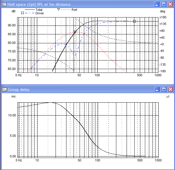 Площадь порта 50- в 4 раза меньше Sd, на кой ... она нам такая нужна. Если пытаемся сравнить два оформления и два симулятора, то нужно как то ограничить количество переменных. И вот если данный динамик не позволит задать площадь порта близкую к Sd, куда дальше двигаться (мы же с лабиринтом пытаемся сравнивать и т. д.). С другой стороны тут же :