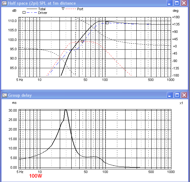 Теперь глянем при мощности 100 W, потому как динамик может!