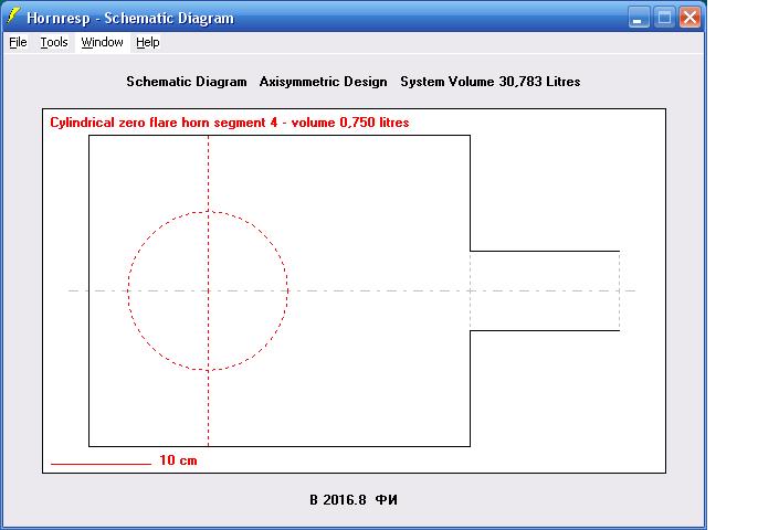 Хотелось бы ... Задаю для В2016 30 литров и порт 100квадрат 150 мм длины. В окне визарда "схематик" виден объем. Двигая ползунки сечения сегментов и длины, изменяю форму с длинной и узкой на широкую (морду) и короткую, при неизменном объеме, ЧХ - разная.